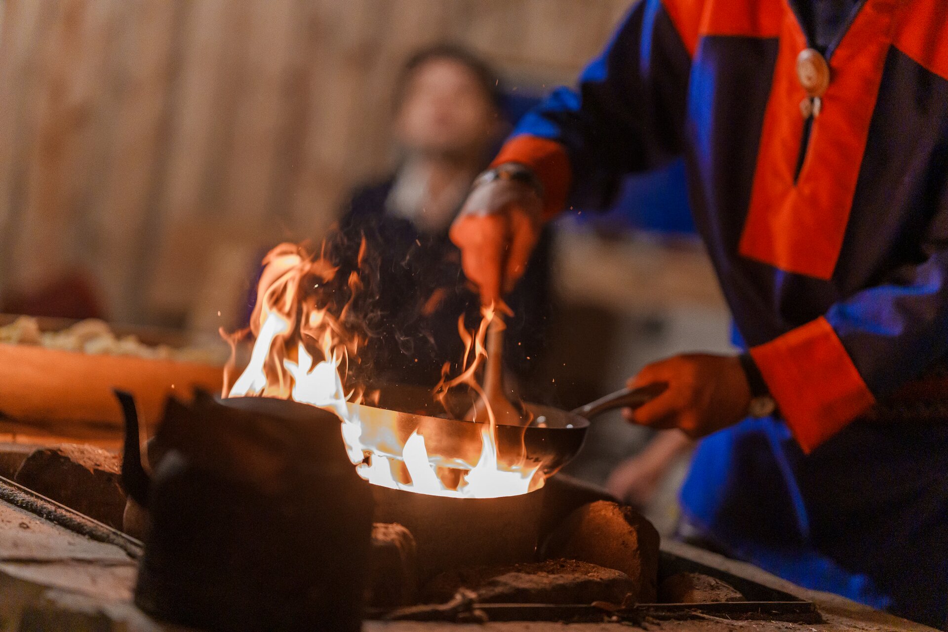Davvi Siida serverer røykt reinkjøtt, tilberedt på åpen flamme i jordgammen. Utsi-familien byr ikke bare på et fantastisk måltid, men også et dypdykk i samisk kultur og historie som formidles på en trollbindende måte gjennom mat, historiefortelling og joik.